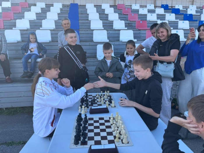 Помимо концертной программы, фотозоны, обеда в формате полевой кухни, ребята померились силами за шахматными досками.