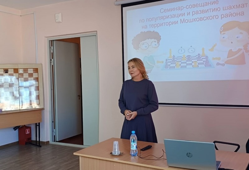 В Доме детского творчества прошёл семинар-совещание по популяризации и развитию шахмат на территории Мошковского района. Открыла семинар директор управления образования - Юлия Сергеевна Рыбалкина.