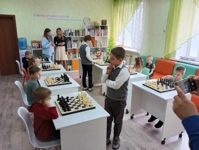 В районной детской библиотеке состоялось итоговое мероприятие учебного года для дошкольников. В нём приняли участие ребята из старших и подготовительных групп детских садов райцентра. Главной частью мероприятия стал сеанс одновременной игры, который провели для дошколят близкие по возрасту воспитанники шахматного клуба "Точки роста" КСОШ №3 Арсений Чеботаревский и Ярослав Косолапов.