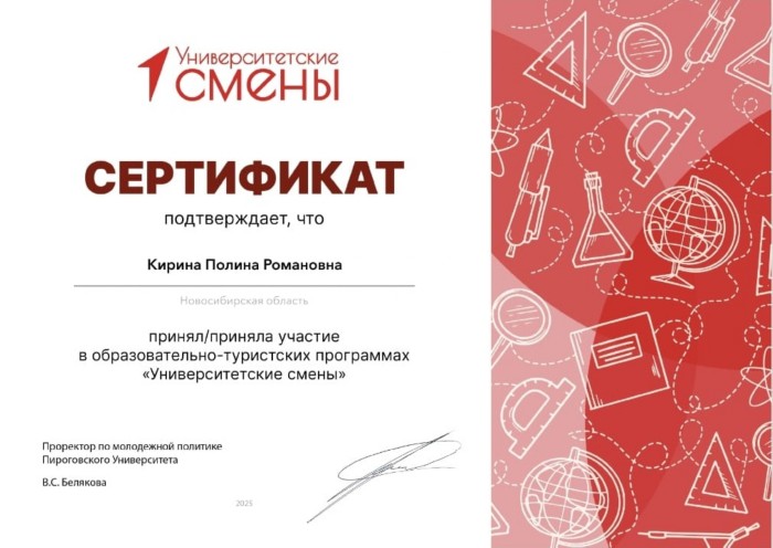 Полина Кирина, обучающаяся в Центре "Точка роста" по программам дополнительного образования "Инженерия космических систем" и "Гидропоника", успешно прошла отбор и стала участницей Университетской смены.