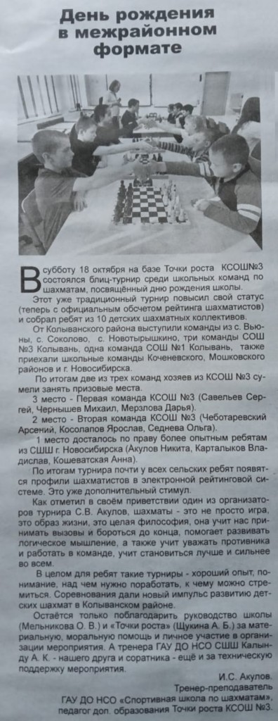 28.10.2025г. Статья педагога дополнительного образования И.С.Акулова "День рождения в межрайонном формате" в газете "Трудовая правда"